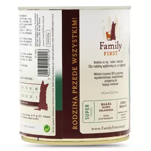- Zawartość składników analitycznych:białko surowe 12,7, tłuszcz surowy - 6,6, popiół surowy - 1,7, włókno surowe - 1,9, wilgotność - 76,9 wapń (Ca) - 0,3, fosfor (P) - 0,2. kwas omega 3 - 0,1, kwas omega 6 - 0,8.