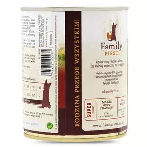 - Skład:Kurczak 34% (mięso, wątroba, serca), 34% królik (płuca, serca, wątroba), 27,5% bulion, 4% jabłko, 3,3 % ryż, 1 % minerały, 0,1% olej z łososia, suszone drożdże piwne, suszone jagody goji, ekstrakt jukki mojave.