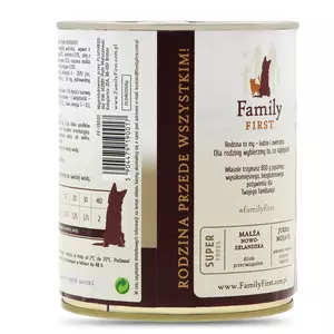 - Skład:wieprzowina 50% (mięso, wątroba, płuca). wołowina 14% (mięso, płuca, serca, żołądki), rosół z wołowiny 27,5%, marchewka 4%, ryż 3,3 %, minerały 1%, olej z łososia 0,1%, szpinak suszony, ekstrakt jukki mojave 0,01%.