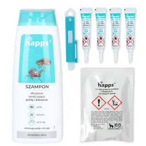 Krople dla psów 5 - 10 kg, obroża 35 cm dla małych psów, szampon 250 ml przeciw pchłom / kleszczom i szczypce do usuwania kleszczy
