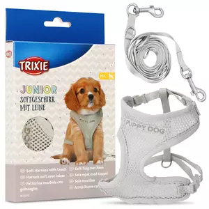 (28)Miękkie szelki ze smyczą dla szczeniąt 36 - 50 cm / 10 mm 2 m jasnoszare