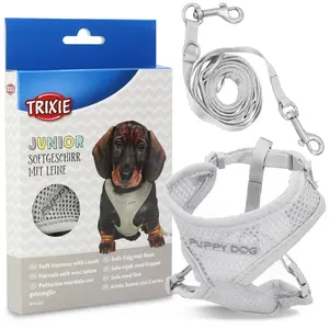 (6)Miękkie szelki ze smyczą dla szczeniąt 26 - 34 cm / 10 mm 2 m jasnoszare