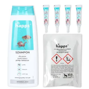 Krople dla psów 5 - 10 kg, obroża 35 cm dla małych psów i szampon 250 ml przeciw pchłom / kleszczom