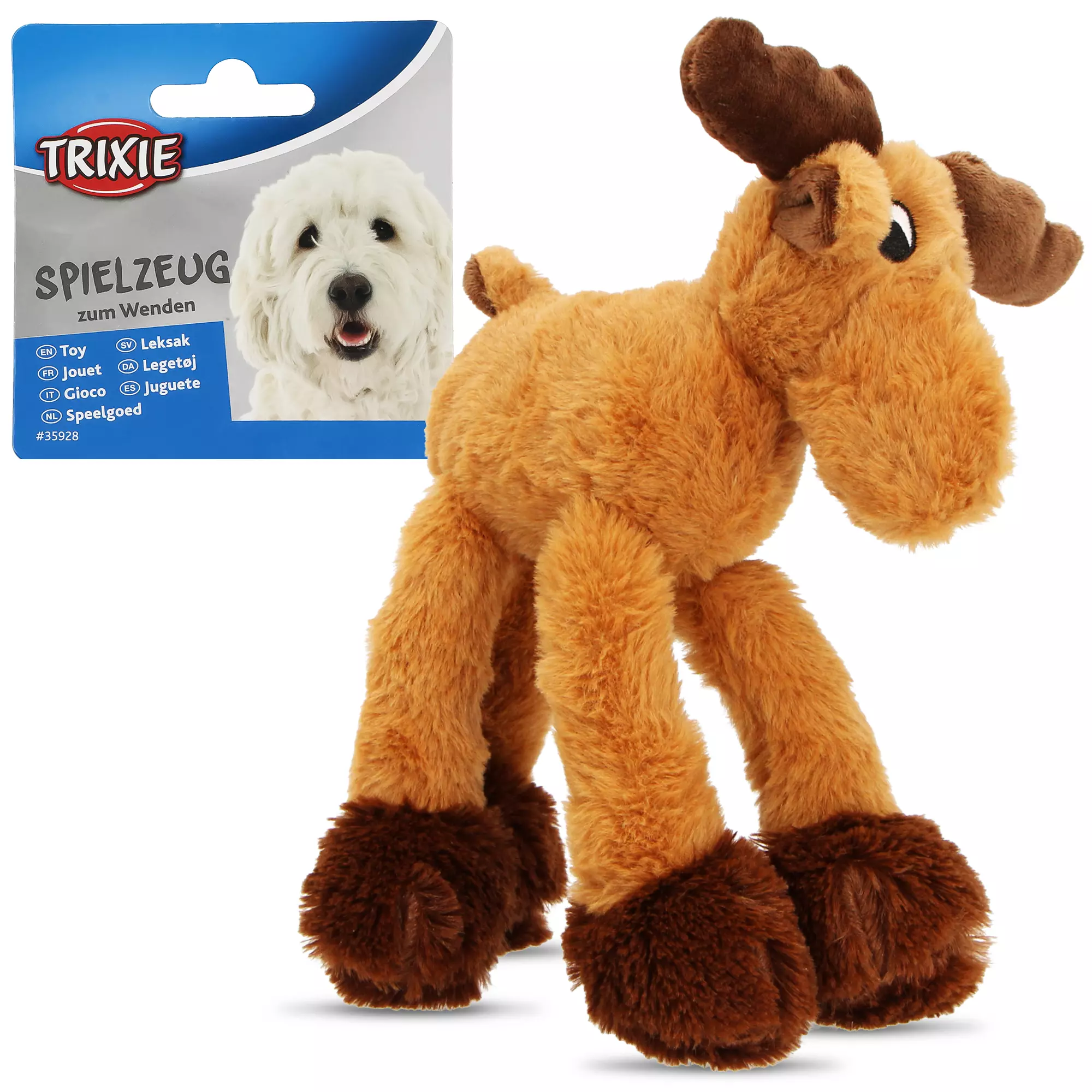 Nietypowa struktura zabawki - pluszowy łoś zaciekawi Twojego zwierzaka, który będzie chętniejszy do zabawy.