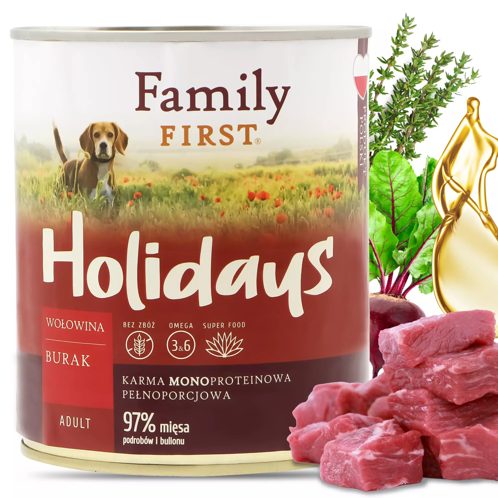 Postaw na mokrą karmę Family First - z wołowiną i burakiem. To produkt, który jest bezpieczny dla psich alergików, a przy tym ma doskonały smak.