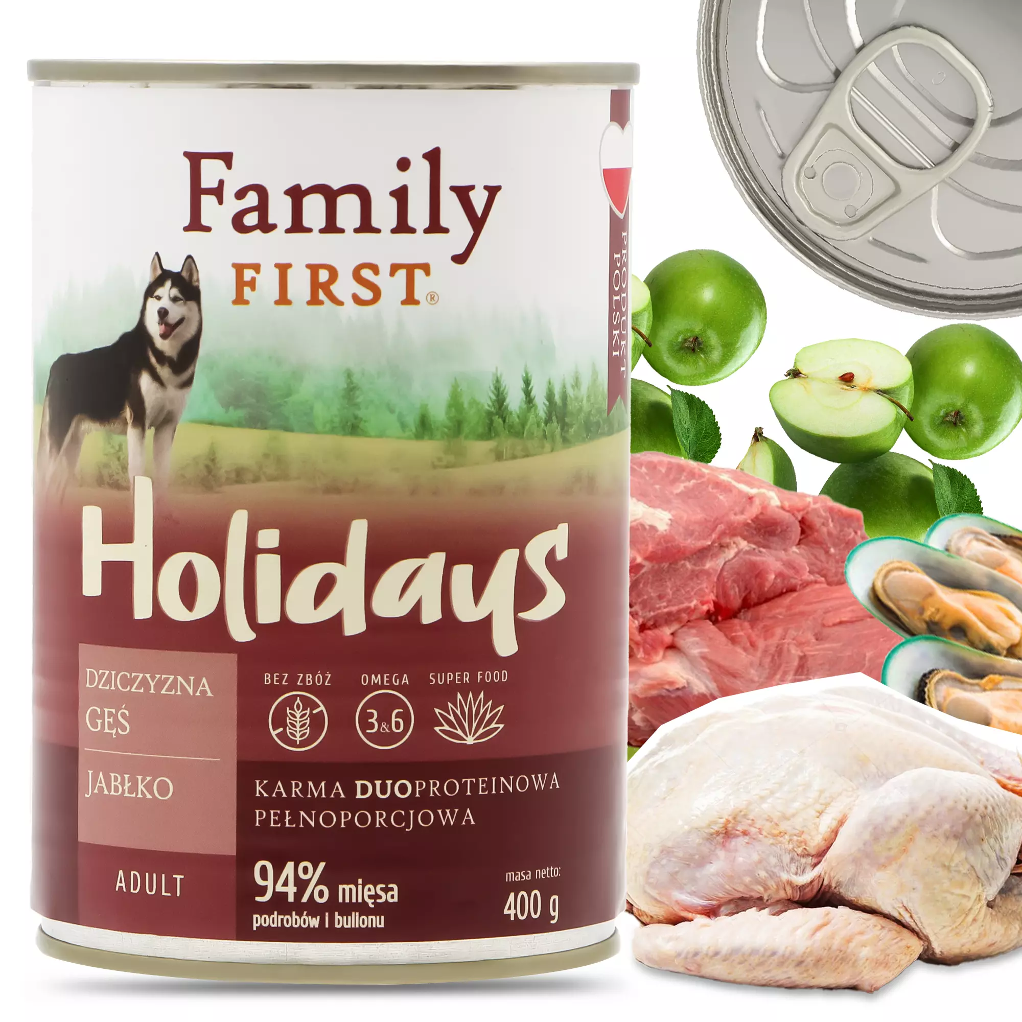 Karma Family First z dziczyzną i gęsią to najlogiczniejszy wybór. To wyłącznie zdrowe składniki oraz doskonały smak, na który skusi się nawet najbardziej wybredny psiak.