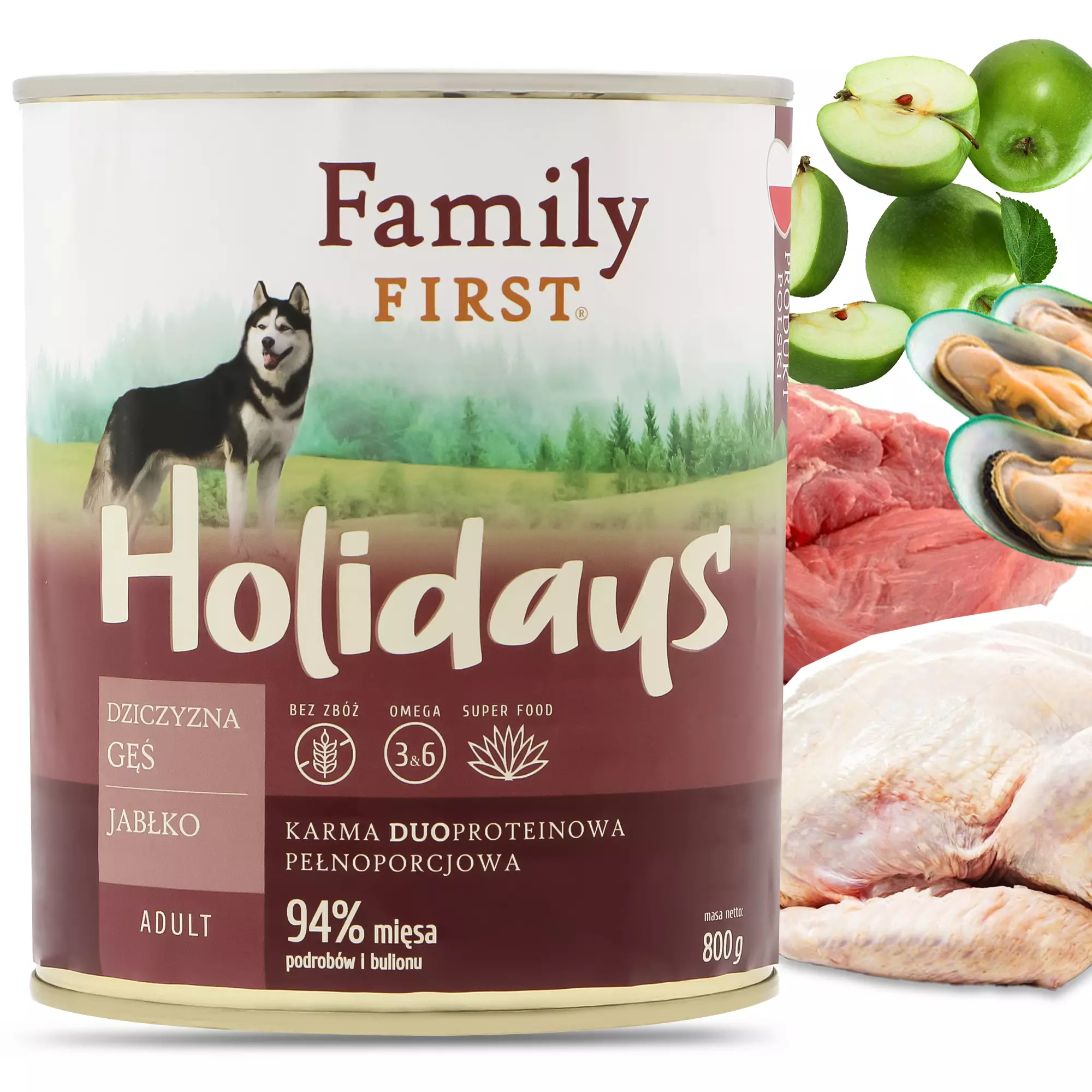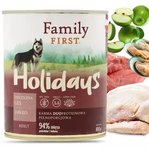 Karma Family First z dziczyzną i gęsią to najlogiczniejszy wybór. To wyłącznie zdrowe składniki oraz doskonały smak, na który skusi się nawet najbardziej wybredny psiak.