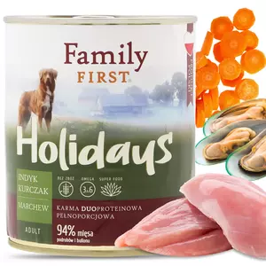 Mamy dla Ciebie mokrą karmę Family First bogatą w mięso z indyka i kurczaka, a także marchewkę. To pokarm nawet dla wyjątkowo wybrednych psich smakoszy.