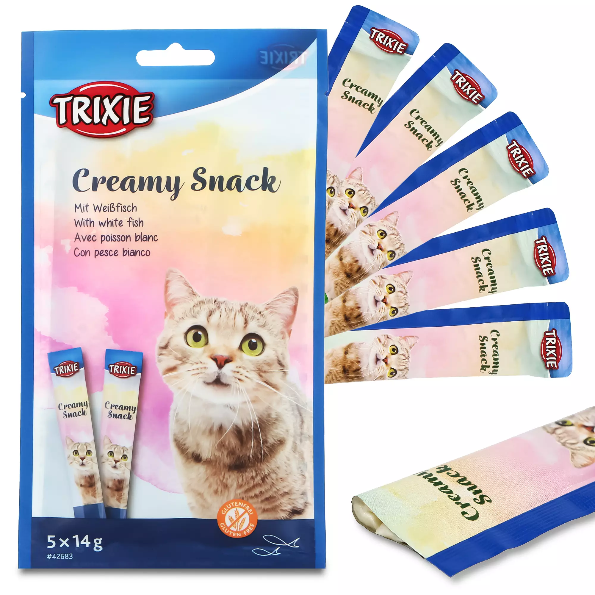 Pasta dla kota Creamy snack to nie tylko doskonały smak, ale także bardzo dobry skład pozbawiony glutenu. Zamiast niego w przekąsce wykorzystano skrobię z tapioki, która jest bezpieczna dla kocich alergików mających problem z nietolerancjami pokarmowymi.