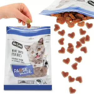 Pyszna i aromatyczna przekąska - rybne kawałki w kształcie serc doskonale uzupełnią dietę Twojego mruczka.