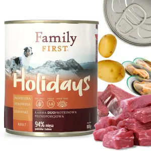 Karma Family First z jagnięciną i wołowiną to doskonały wybór! To zdrowe i pożywne połączenie dwóch rodzajów mięs, cenne dodatki wspierające zdrowie, a przede wszystkim - doskonały smak.