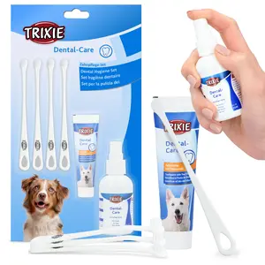 Zestaw ze szczoteczkami, pastą i sprayem do zębów to wszystko, czego potrzebujesz, aby zadbać o higienę jamy ustnej Twojego psa. Dzięki temu psiak będzie miał świeży oddech i zdrowe zęby!