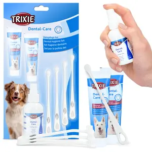 Zestaw ze szczoteczkami, pastą i sprayem do zębów to wszystko, czego potrzebujesz, aby zadbać o higienę jamy ustnej Twojego psa. Dzięki temu psiak będzie miał świeży oddech i zdrowe zęby!