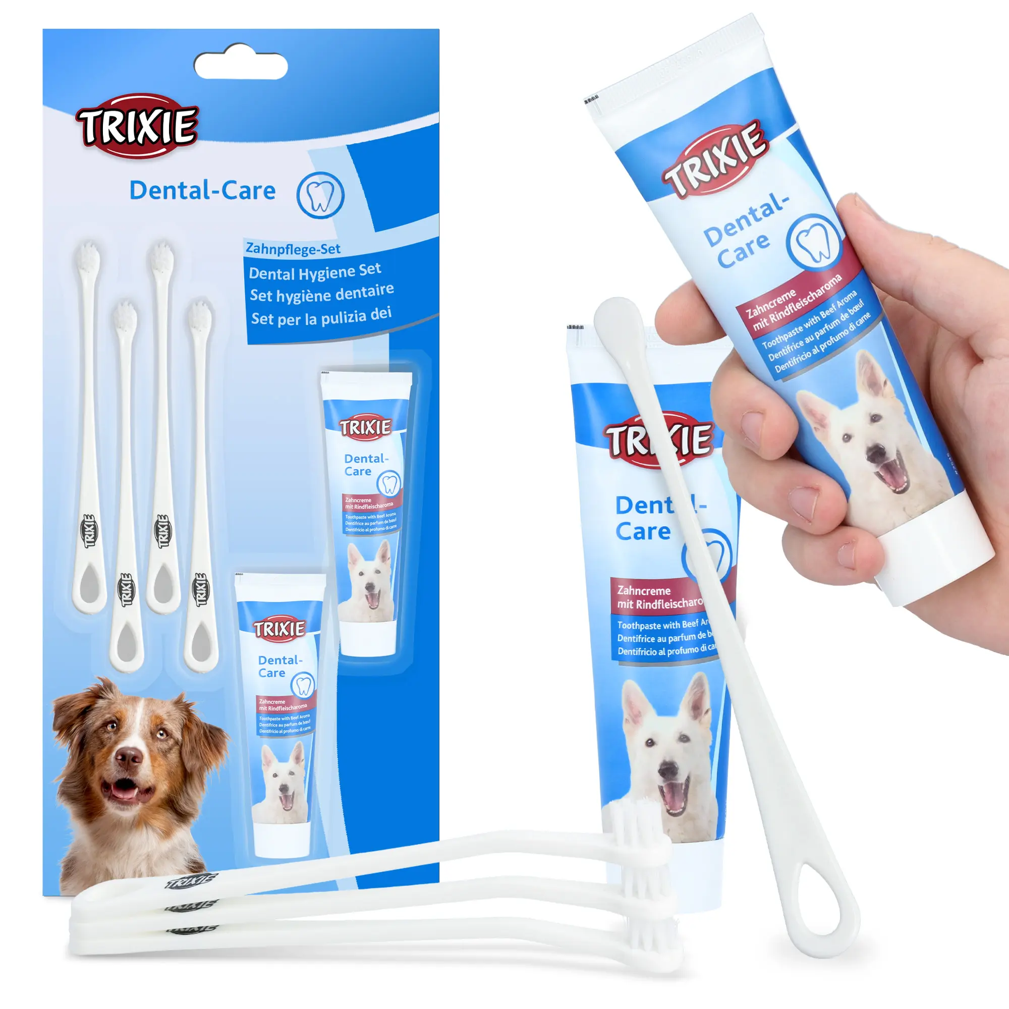 Regularna higiena jamy ustnej to postawa - również dla psów! Zestaw ze szczoteczkami i pastą do zębów znacznie ułatwi Ci czyszczenie zębów i dziąseł psiaka.