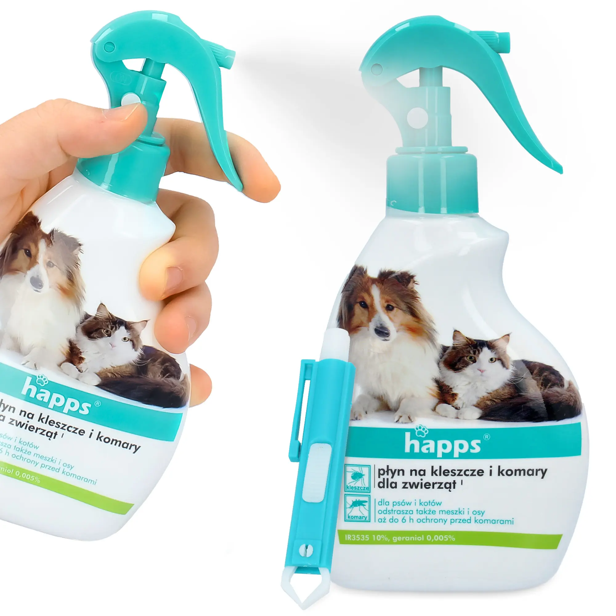 Zestaw ze specjalnym płynem i szczypcami pomoże Ci zadbać o komfort i zdrowie zwierzaka. Płyn eliminuje problem pasożytów podczas spaceru, a szczypce pomogą szybko i bezboleśnie usunąć wbite kleszcze.