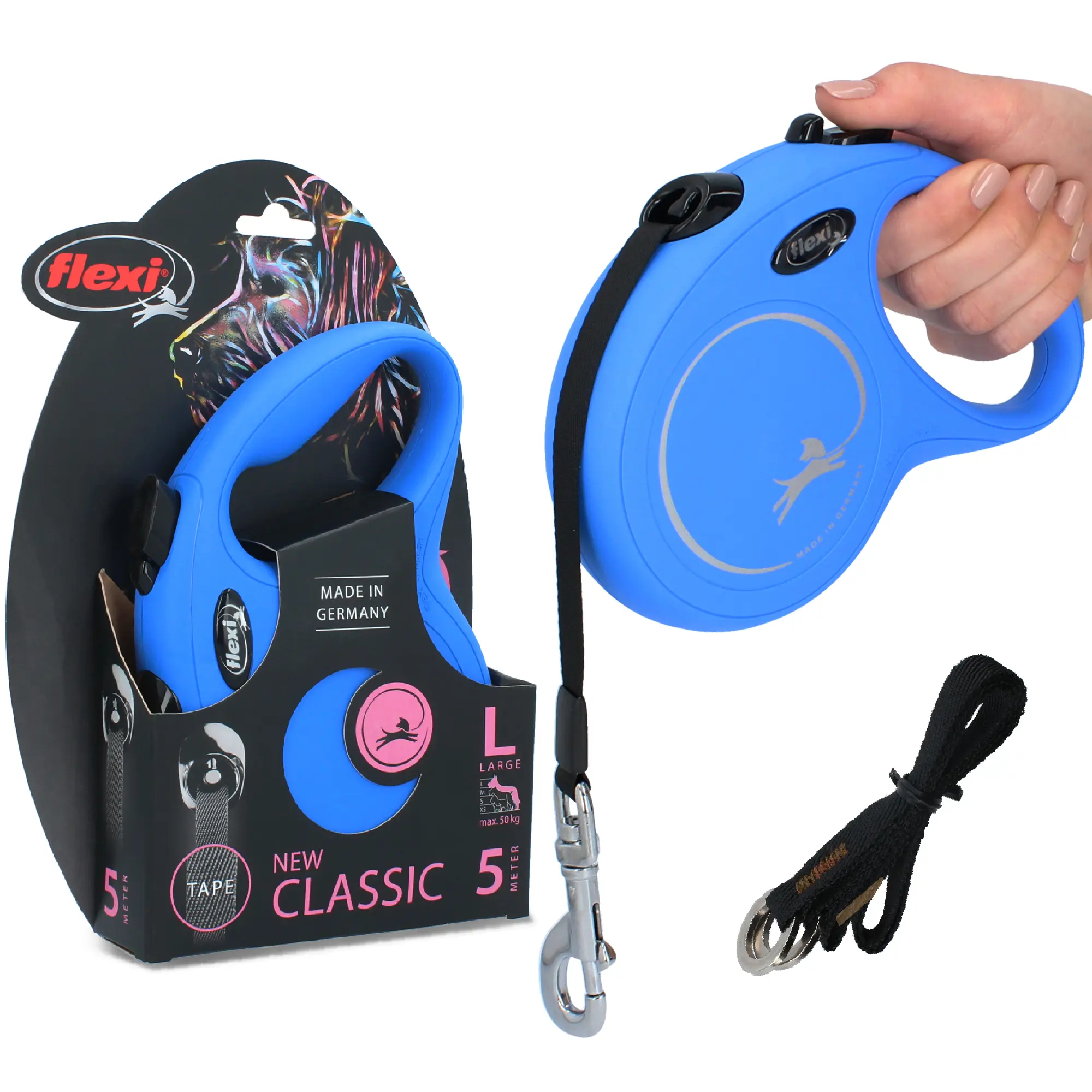 Smycz automatyczna New Classic Taśma L 50kg 5m niebieska