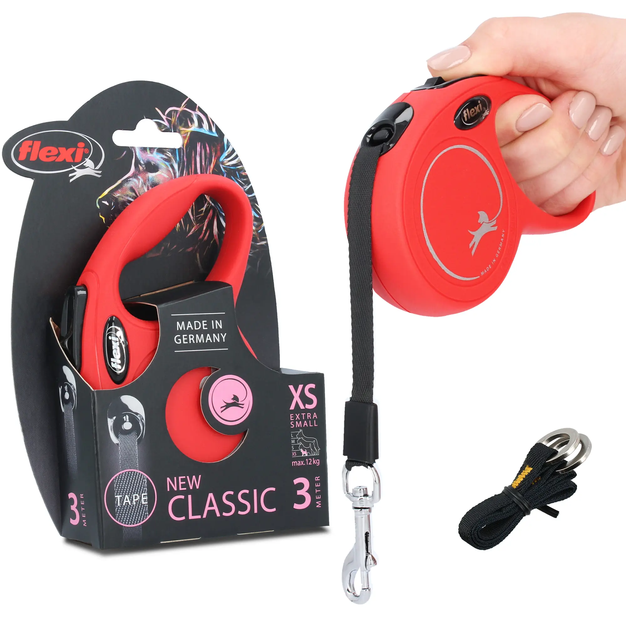 Smycz automatyczna New Classic Taśma XS 12kg 3m czerwona