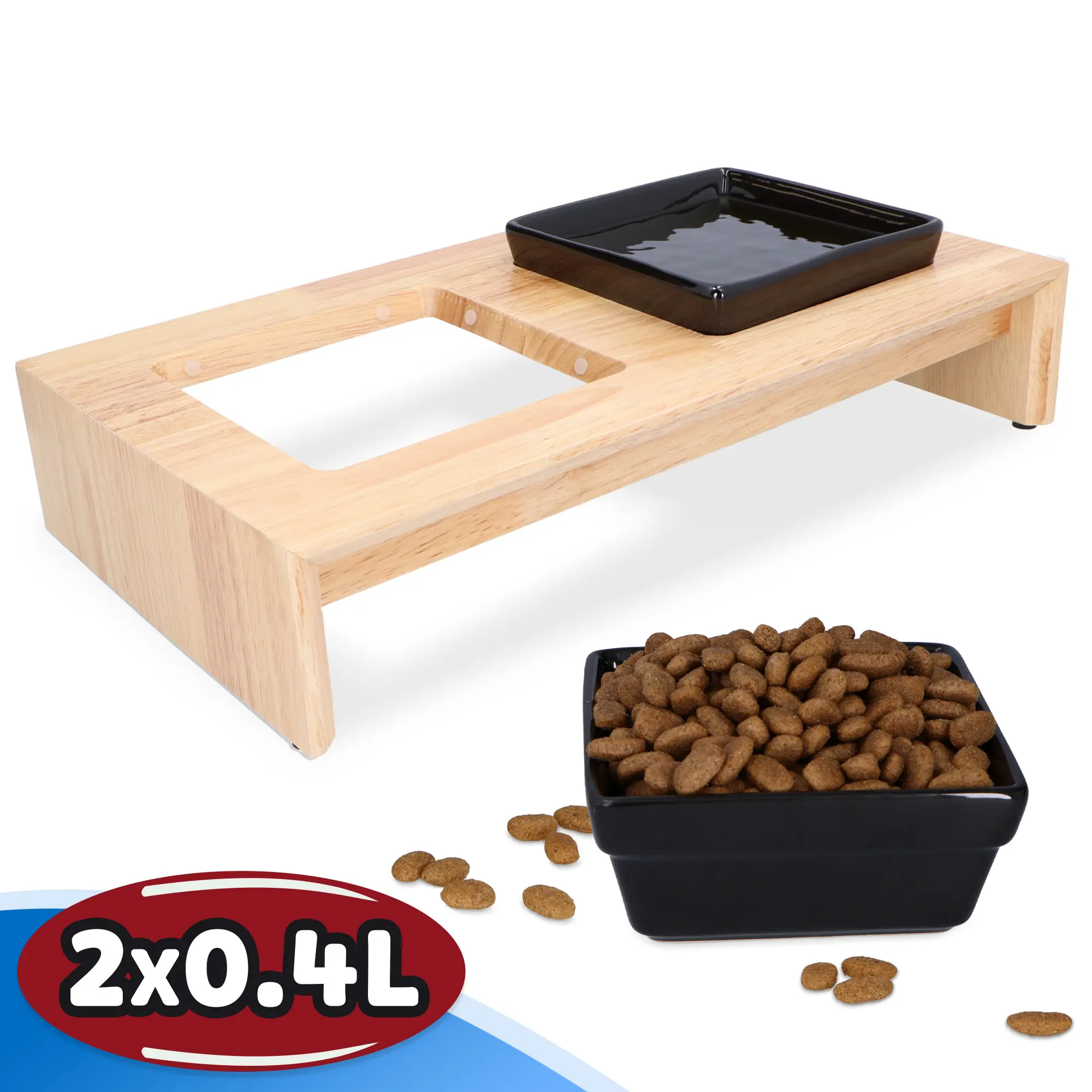 Postaw na komplet ceramicznych misek na drewnianym stelażu. Dzięki nim zadbasz o komfort czworonoga i jego zdrowie, zapobiegając przypadkowego zakrztuszeniu się karmą. Swoje wnętrze wzbogacisz natomiast o stylowy produkt.