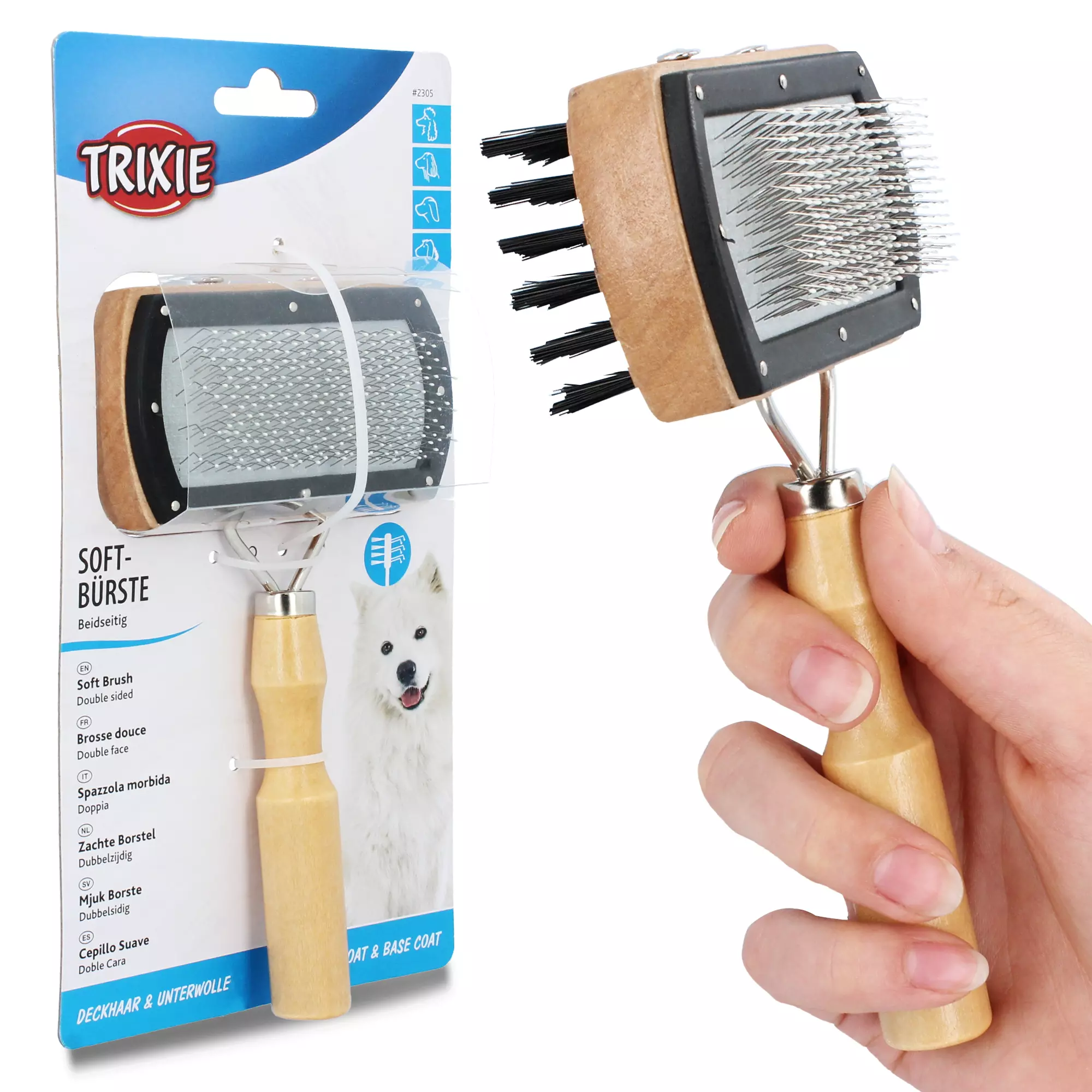 Wybierz dwustronną, miękką szczotkę, która ułatwi Ci pielęgnację sierści czworonoga. Dzięki dziej nie tylko zapewnisz zwierzakowi piękny wygląd, ale także pomożesz mu się zrelaksować przez delikatny masaż skóry.