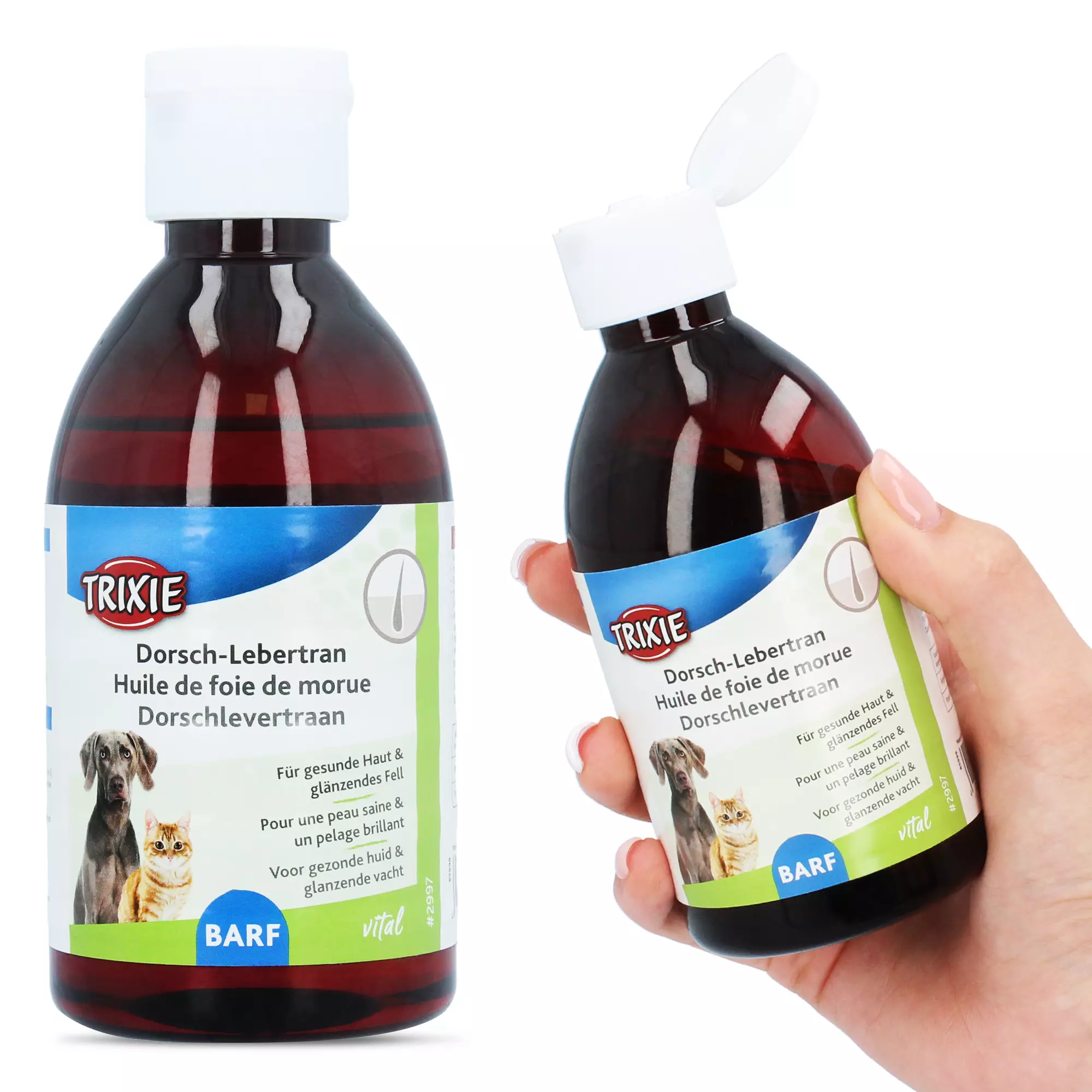 Postaw na bogaty w witaminy i składniki odżywcze tran z wątroby dorsza. To doskonałe uzupełnienie codziennej diety - zarówno psa, jak i kota. Dzięki temu produktowi wspomożesz jego zdrowie i zadbasz o piękny wygląd zwierzaka.