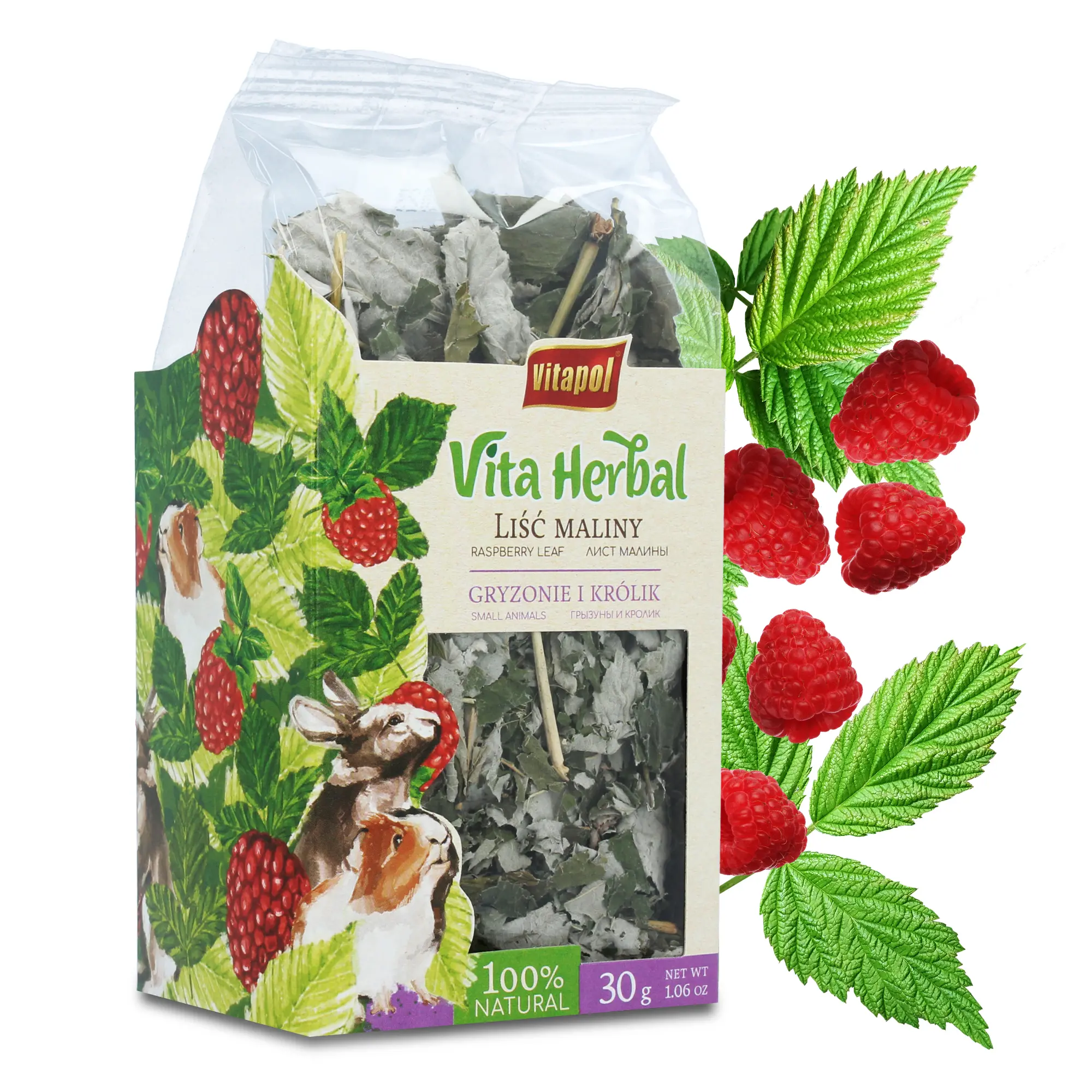 Postaw na przysmak ze suszonych liści malin - doskonale uzupełniający codzienną dietę. Naturalne składniki odżywią organizm zwierzaka i pomocą mu w procesach trawiennych.