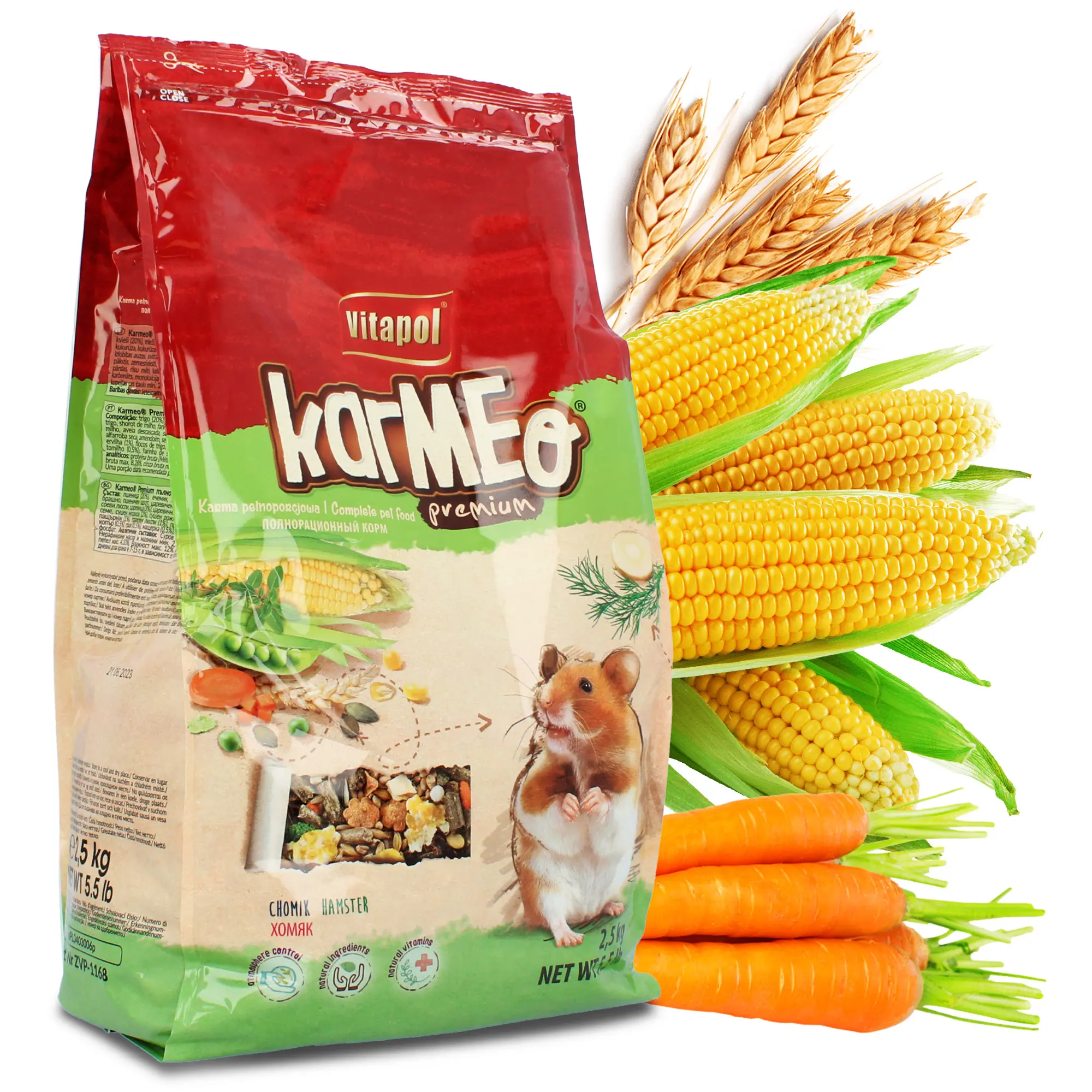 Bogactwo witamin i minerałów - pokarm dostarcza chomikowi niezbędnych składników, które pochodzą m.in. z marchewki i chlebka świętojańskiego.