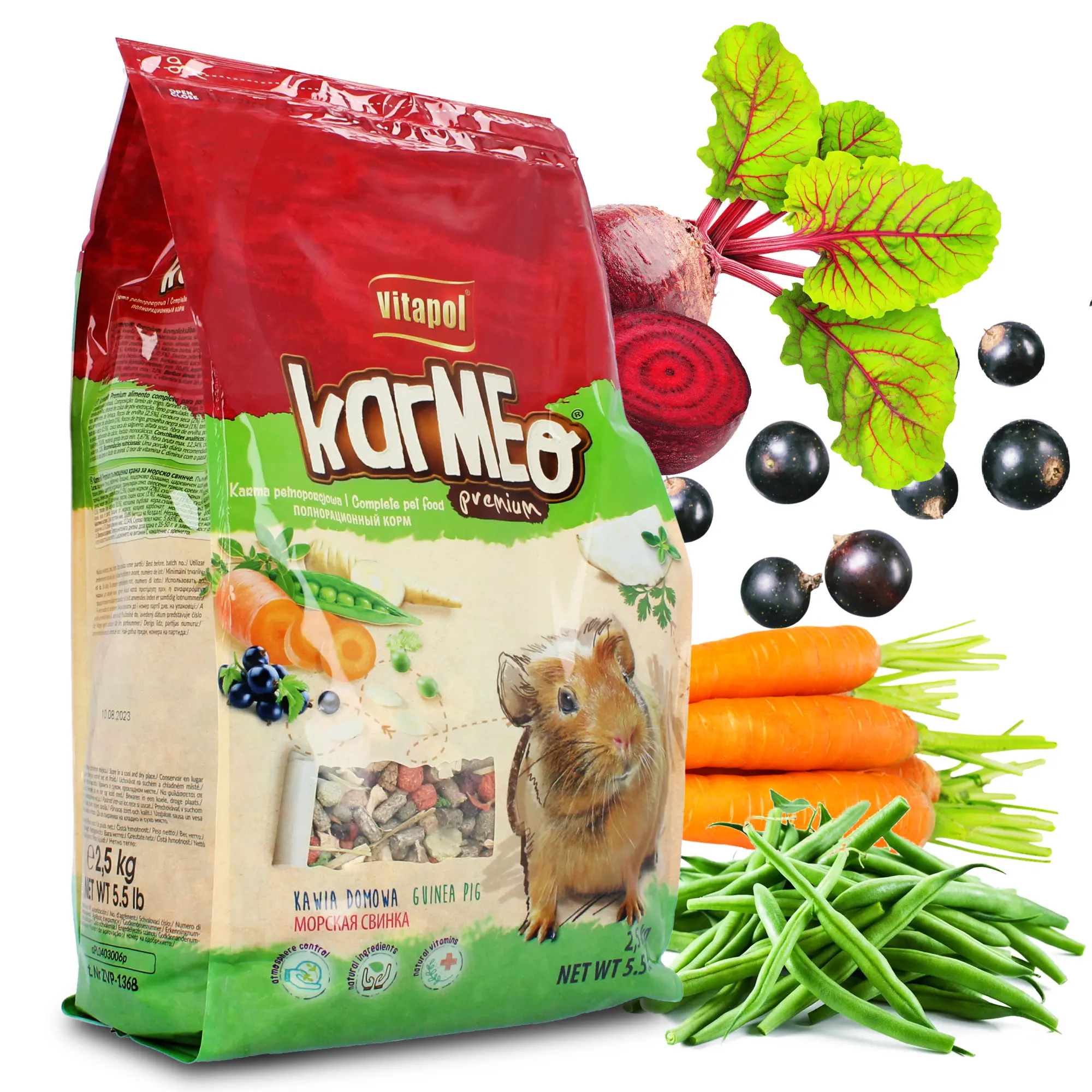 | Skład | Otręby pszenne, mąka pszenna, mączka z lucerny, śruta kukurydziana, mąka kukurydziana, śruta poekstrakcyjna rzepakowa, siano granulowane, otręby owsiane, łuski sojowe, jęczmień, pszenica, siemię lniane, płatki grochowe (2,5%), marchew suszona (2%), pasternak suszony (2%), burak suszony, nasiona dyni (1%), płatki pszenne, porzeczka czarna suszona (1%), tymianek (1%), seler suszony (0,5%), łodyga pietruszki suszona (0,5%), kora wierzby suszona, lucerna suszona, włókno grochowe, pulpa buraczana, mączka z marchwi, węglan wapnia, fosforan jednowapniowy. |