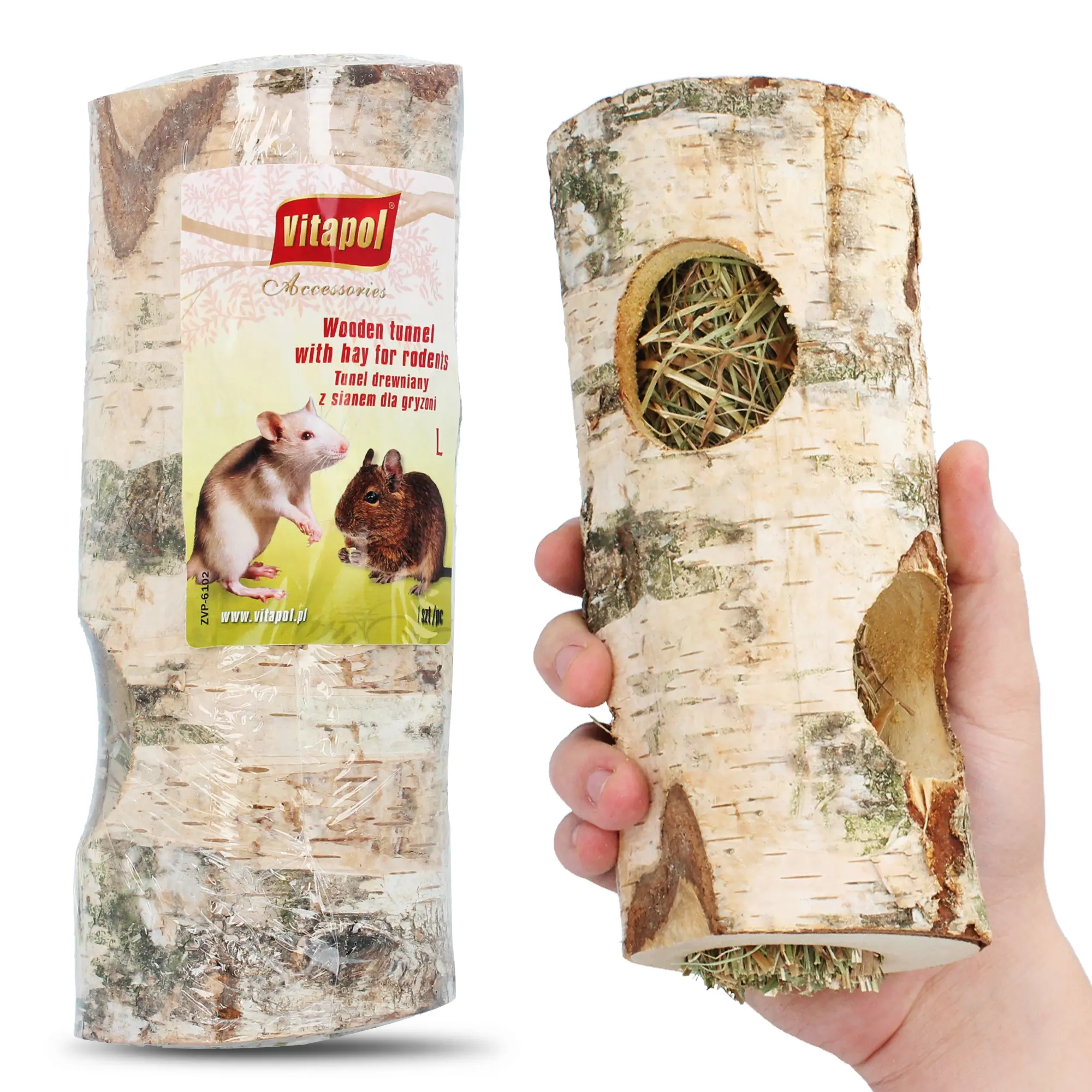Postaw na drewniany tunel z wypełnieniem w postaci sianka. Dzięki temu Twój gryzoń będzie miał doskonałą rozrywkę, a podgryzanie drewna zadba o jego zęby.