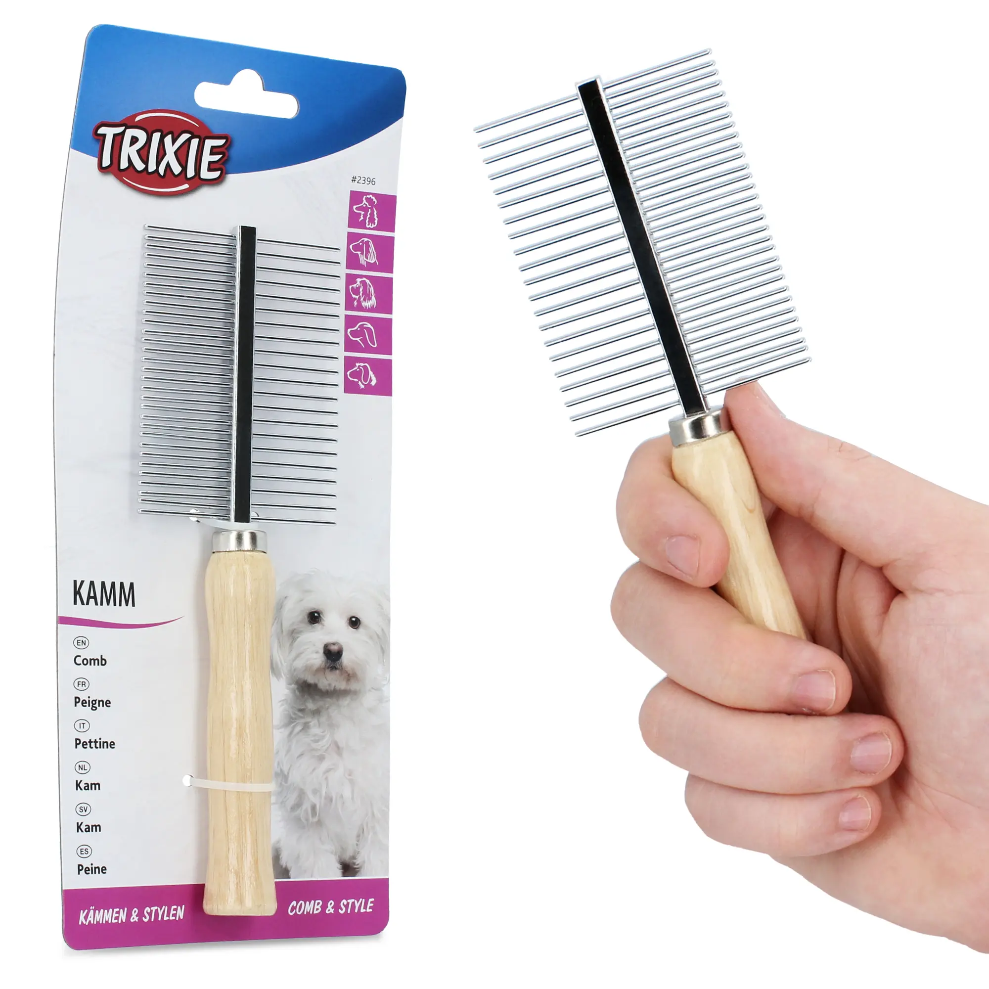 Wybierz dwustronny, specjalny grzebień, który sprawdza się zarówno w przypadku psów, jak i kotów. To rozwiązanie, dzięki któremu rozczeszesz wszelkie kołtuny i zapobiegniesz wypadaniu sierści u Twojego zwierzaka.