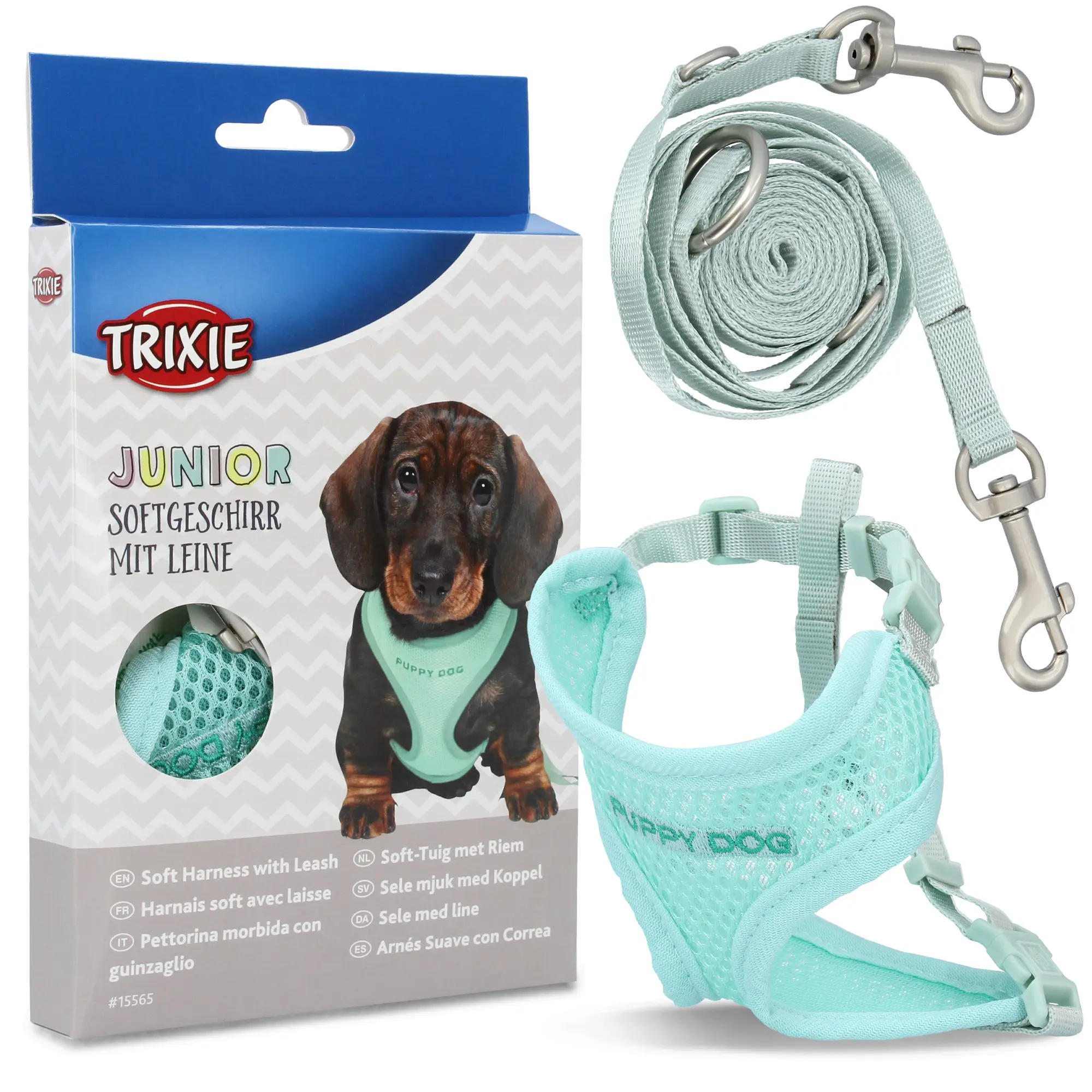 Miękkie szelki ze smyczą dla szczeniąt 26 - 34 cm / 10 mm 2 m miętowe