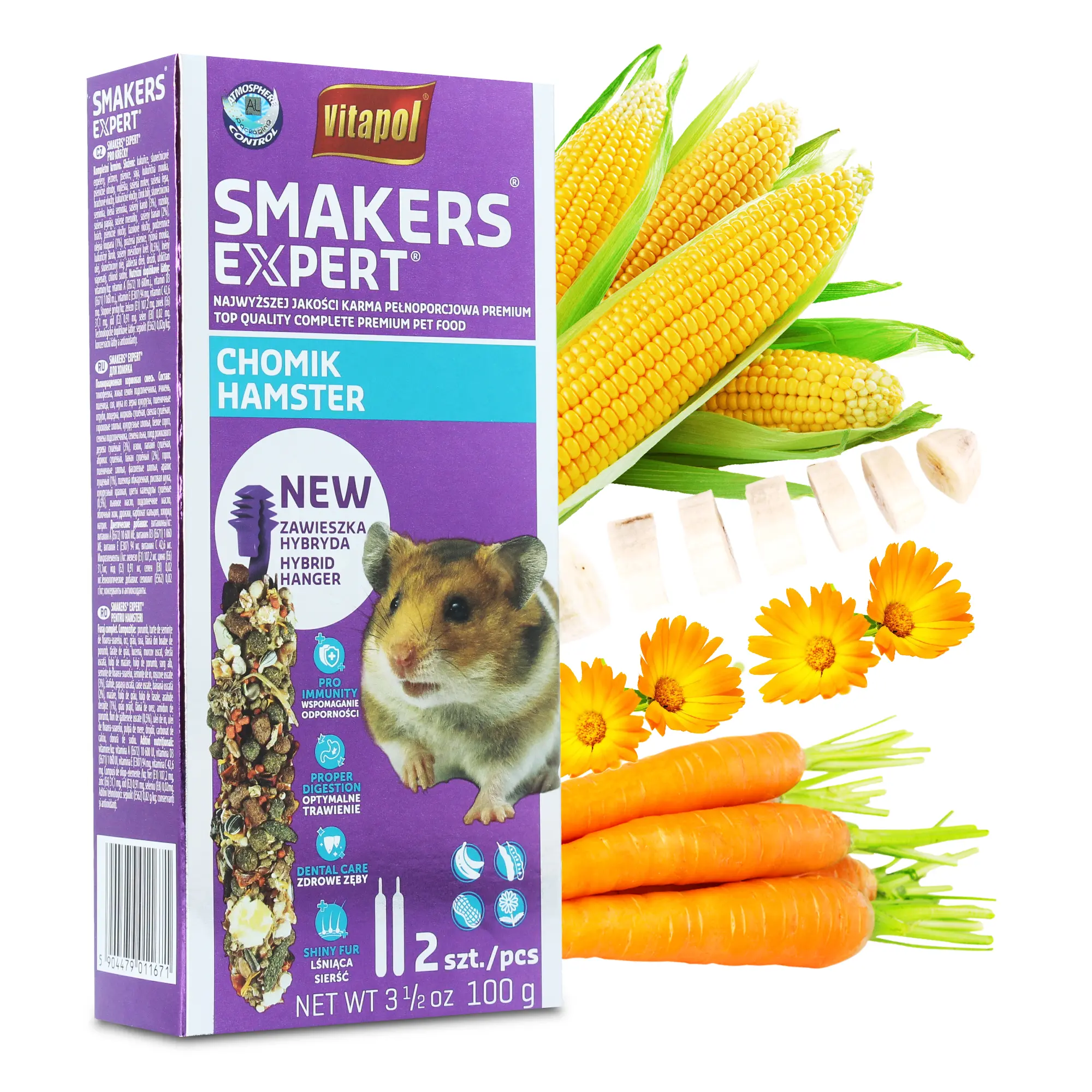 | Składniki dietetyczne | Witaminy/kg: witamina A (E672) 10 600 j.m., witamina D3 (E671) 1 060 j.m., witamina E (E307) 94 mg, witamina C 42,6 mg. Mieszanki pierwiastków śladowych/kg: żelazo (E1) 107,2 mg, cynk (E6) 31,1 mg, jod (E2) 0,91 mg, selen (E8) 0,02mg. |
