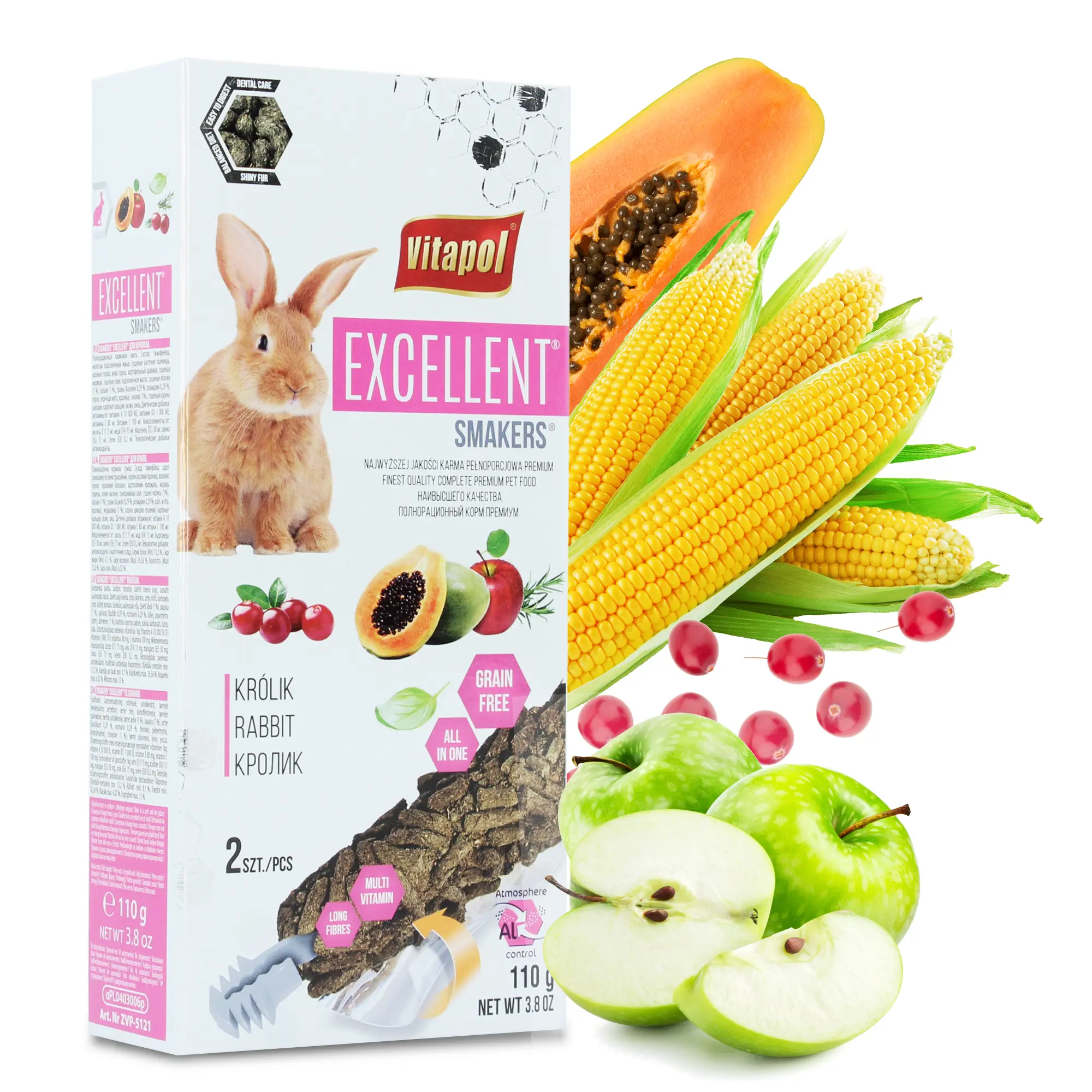 Postaw na kolbę Smakers Excellent - pełną naturalnych składników! To idealny zamiennik klasycznego pokarmu, który dostarczy królikowi wszystkiego, czego potrzebuje i zadba o jego zęby.