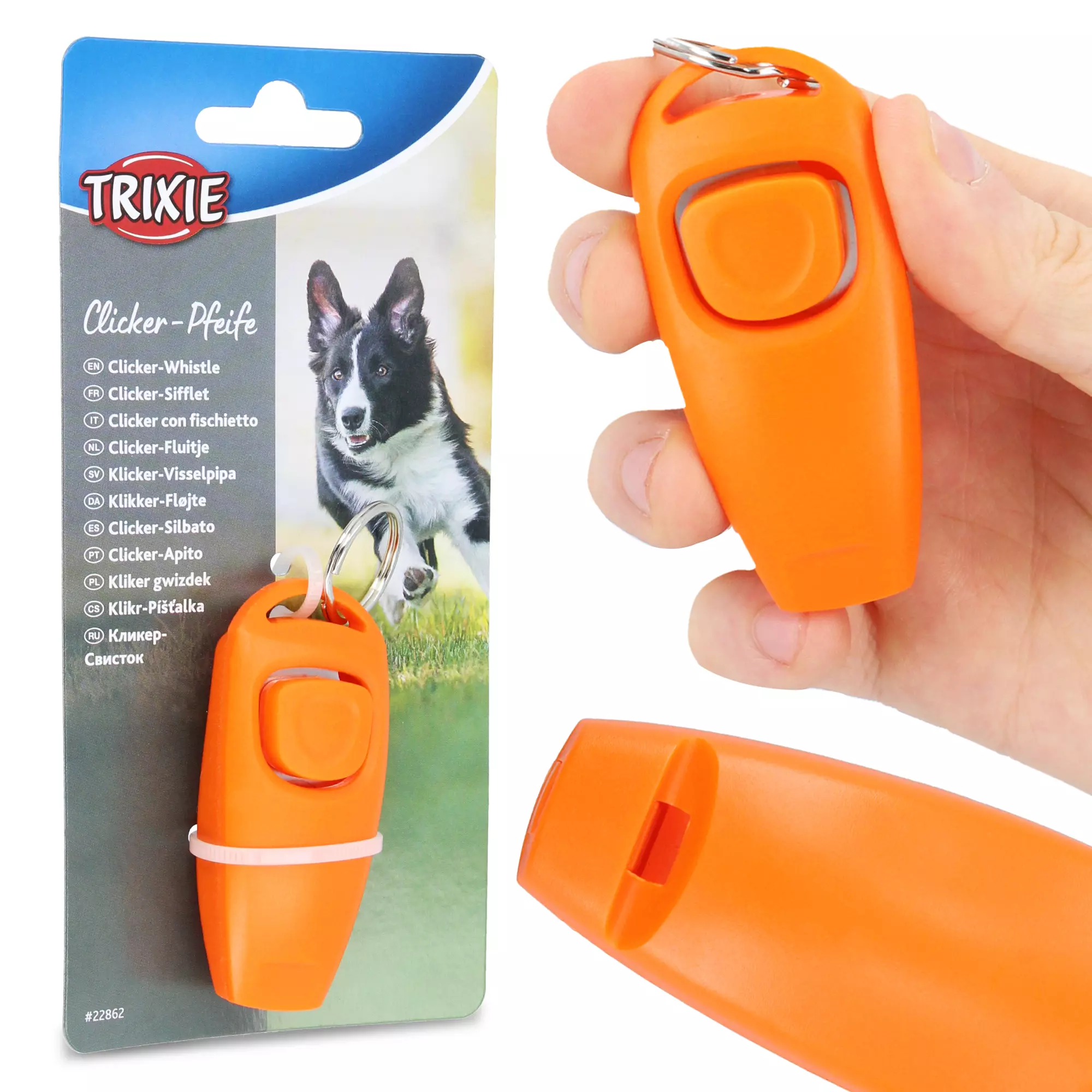 Podwójna funkcjonalność - kliker pomaga w wychowaniu psa i nauce komend, a gwizdek umożliwia przywoływanie czworonoga.