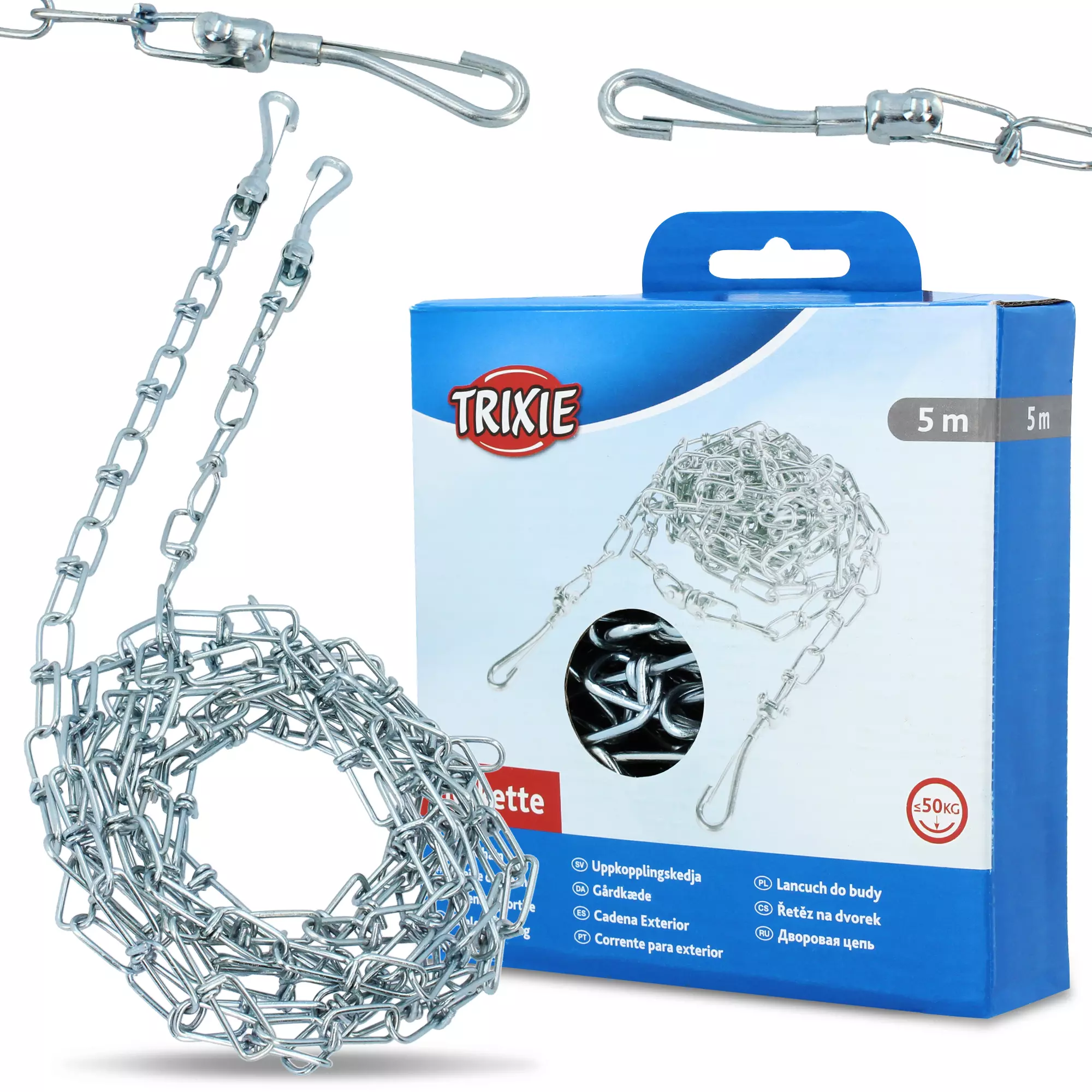 Wybierz praktyczny łańcuch z karabińczykami. To wytrzymałe rozwiązanie, które nie ograniczy ruchów Twojego zwierzaka i zadba o jego bezpieczeństwo.