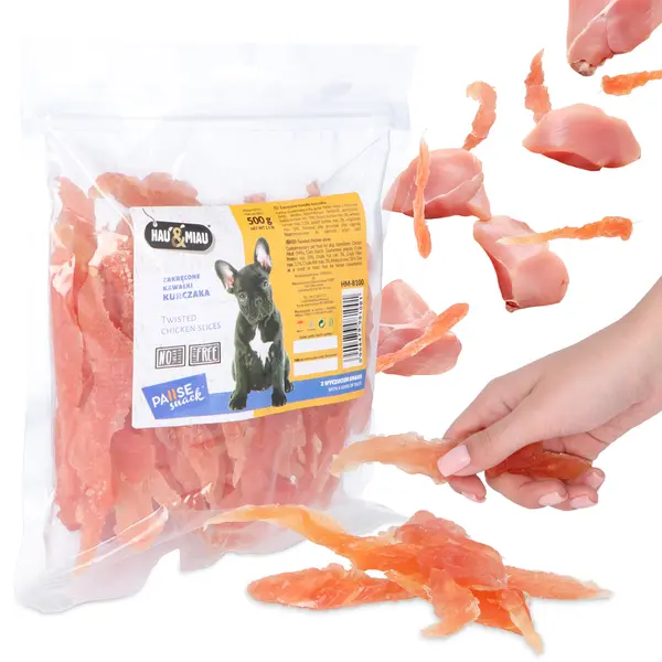 Wybierz zakręcone kawałki kurczaka, które mają w składzie aż 90% mięsa! To doskonałe uzupełnienie codziennej diety i świetna forma nagrody dla zwierzaka.