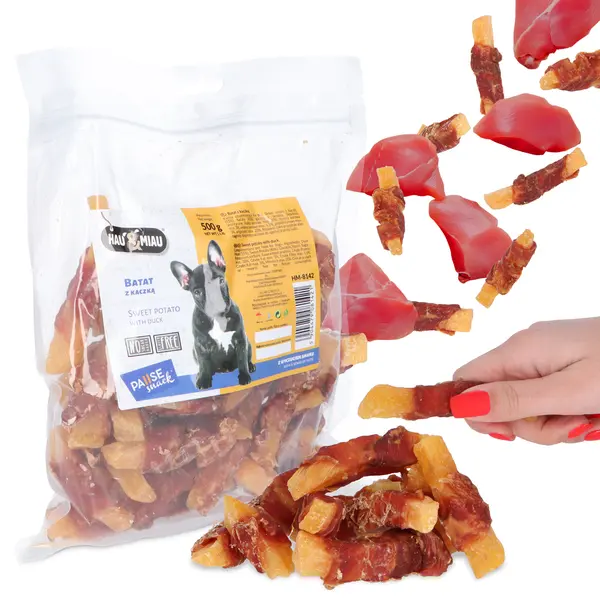 Zależy Ci na pysznym przysmaku z dobrym składem, który mógłbyś podawać swojemu czworonogowi? Wybierz coś nietypowego - bataty owinięte mięsem kaczki. To przekąska, która została stworzona z myślą o najbardziej wybrednych zwierzakach.