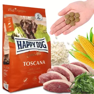 | Skład | Białko kaczki* (21%), mąka kukurydziana, kukurydza, mąka ryżowa, mączka z łososia (5%), melasa buraczana* (bez cukru), hydrolizat wątroby, tłuszcz drobiowy, olej słonecznikowy, wytłoki jabłkowe* (0,8%), chlorek potasu, drożdże*, chlorek sodu, olej rzepakowy, algi morskie* (0,15%), siemię lniane (0,15%) jajo całe suszone, mięso małży*(0,05%), drożdże * (wyciąg), wytłoki gronowe czerwone (0,02%), owoce czarnego bzu, rozmaryn, szałwia, tymianek, cząber, majeranek, ostropest plamisty, karczoch, mniszek, imbir, liście brzozy, pokrzywa, rumianek, kolendra, korzeń lukrecji, owoce anyżu, bazylia, owoce kopru włoskiego, kwiaty czarnego bzu, kwiaty lawendy (zioła suszone razem 0,3%);*) suszona/y/e |