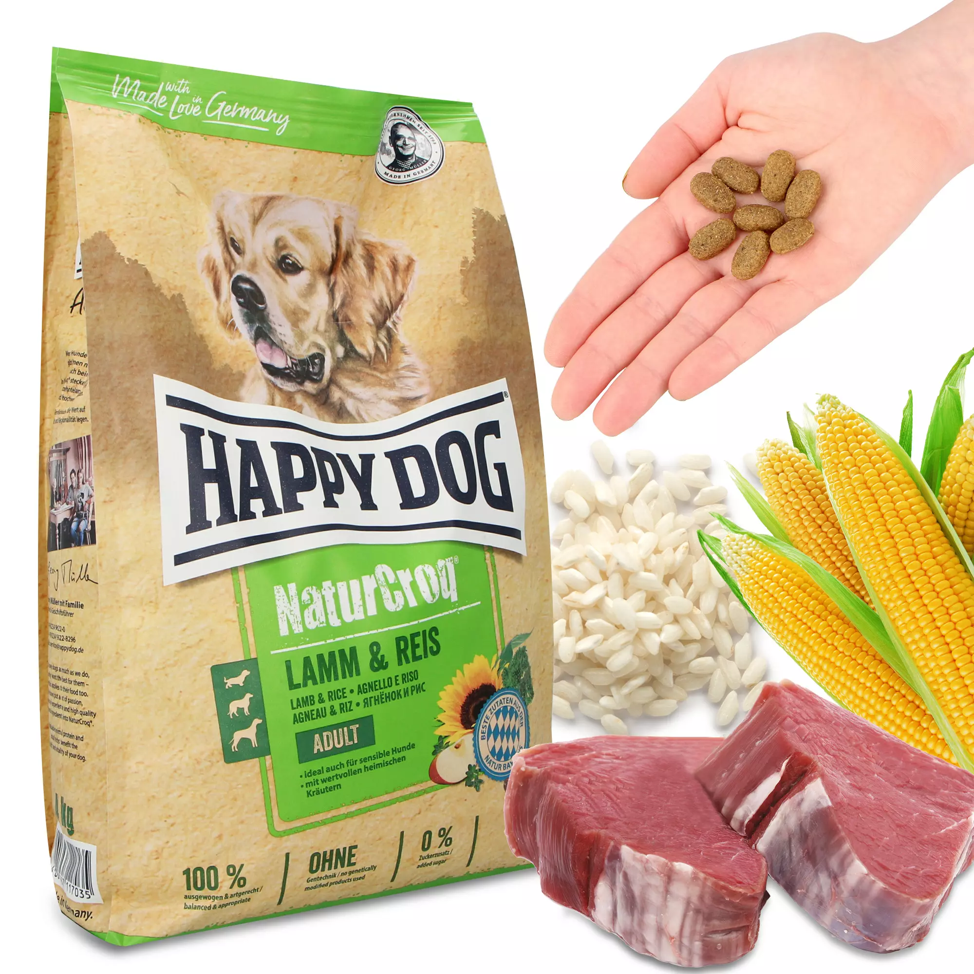 Postaw na granulowaną karmę Happy Dog NaturCroq Jagnięcina/Ryż. To zestaw wyselekcjonowanych składników, które wspierają trawienie, koją nerwy i dbają o piękną sierść pupila. Twój psiak zachwyci się natomiast jej smakiem!