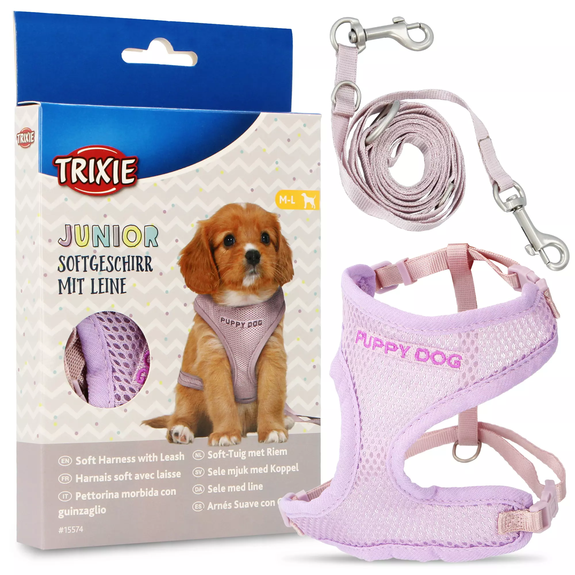 Miękkie szelki ze smyczą dla szczeniąt 36 - 50 cm / 10 mm 2 m liliowe