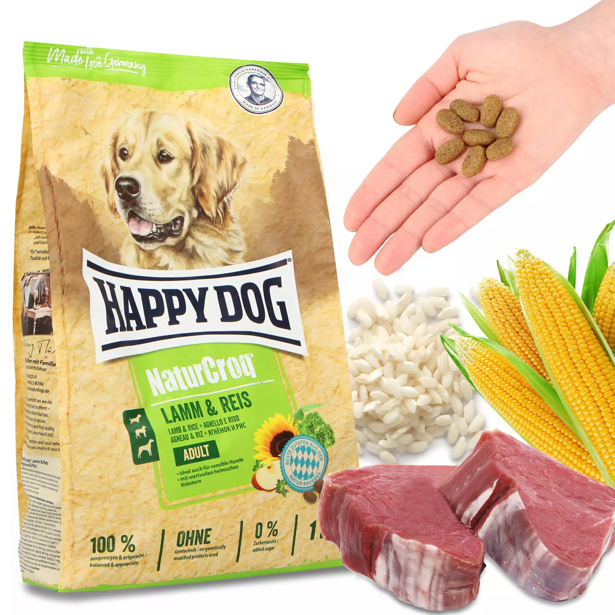 Postaw na granulowaną karmę Happy Dog NaturCroq Jagnięcina/Ryż. To zestaw wyselekcjonowanych składników, które wspierają trawienie, koją nerwy i dbają o piękną sierść pupila. Twój psiak zachwyci się natomiast jej smakiem!