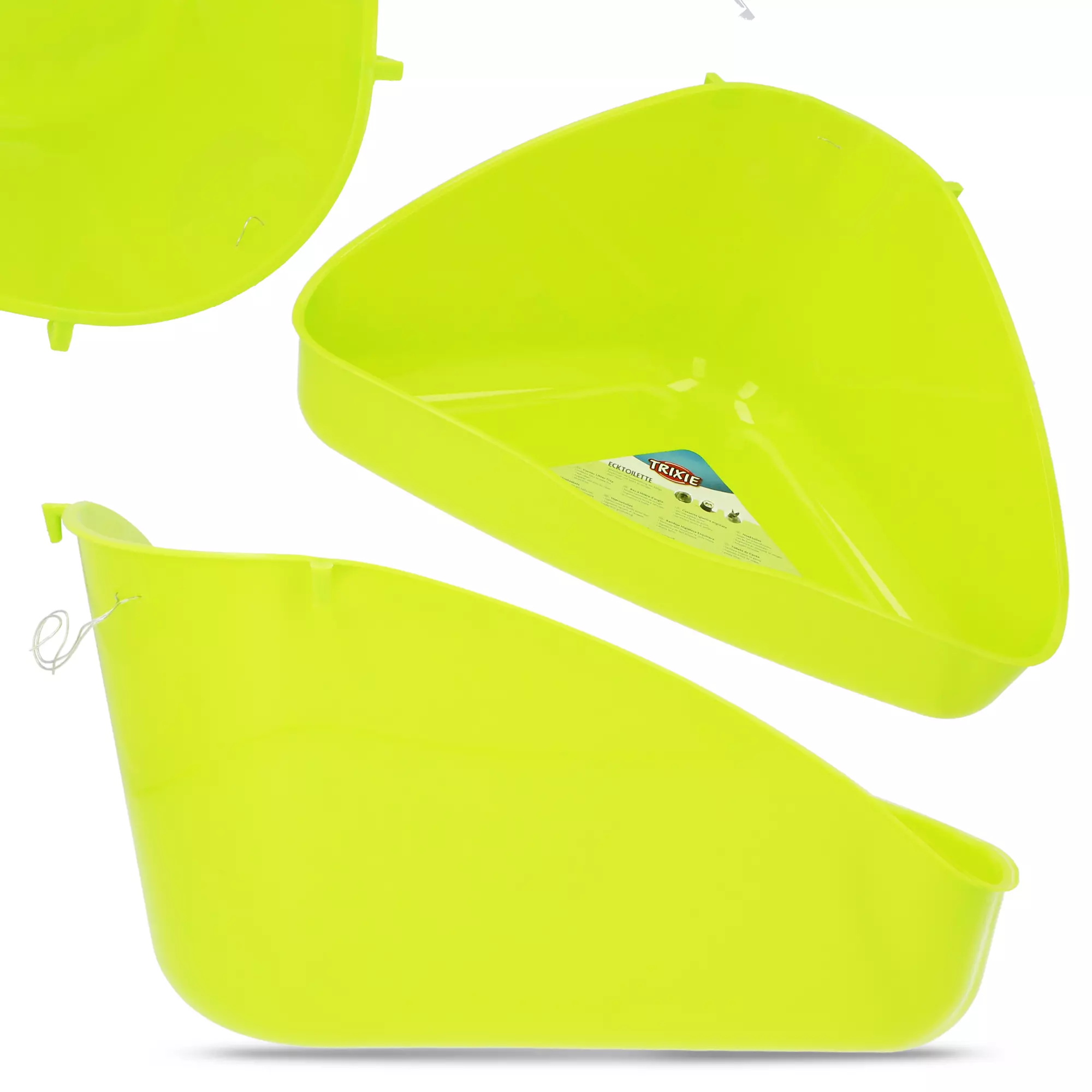 Kuweta ma niskie wejście, co zapewnia gryzoniowi komfortowe wejście do środka. Jej tył jest natomiast wysoki - nie musisz obawiać się, że zabrudzone trociny będą wysypać się z klatki. Specjalny kształt i dopasowanie do narożnika sprawia natomiast, że toaleta zajmuje niewiele miejsca.