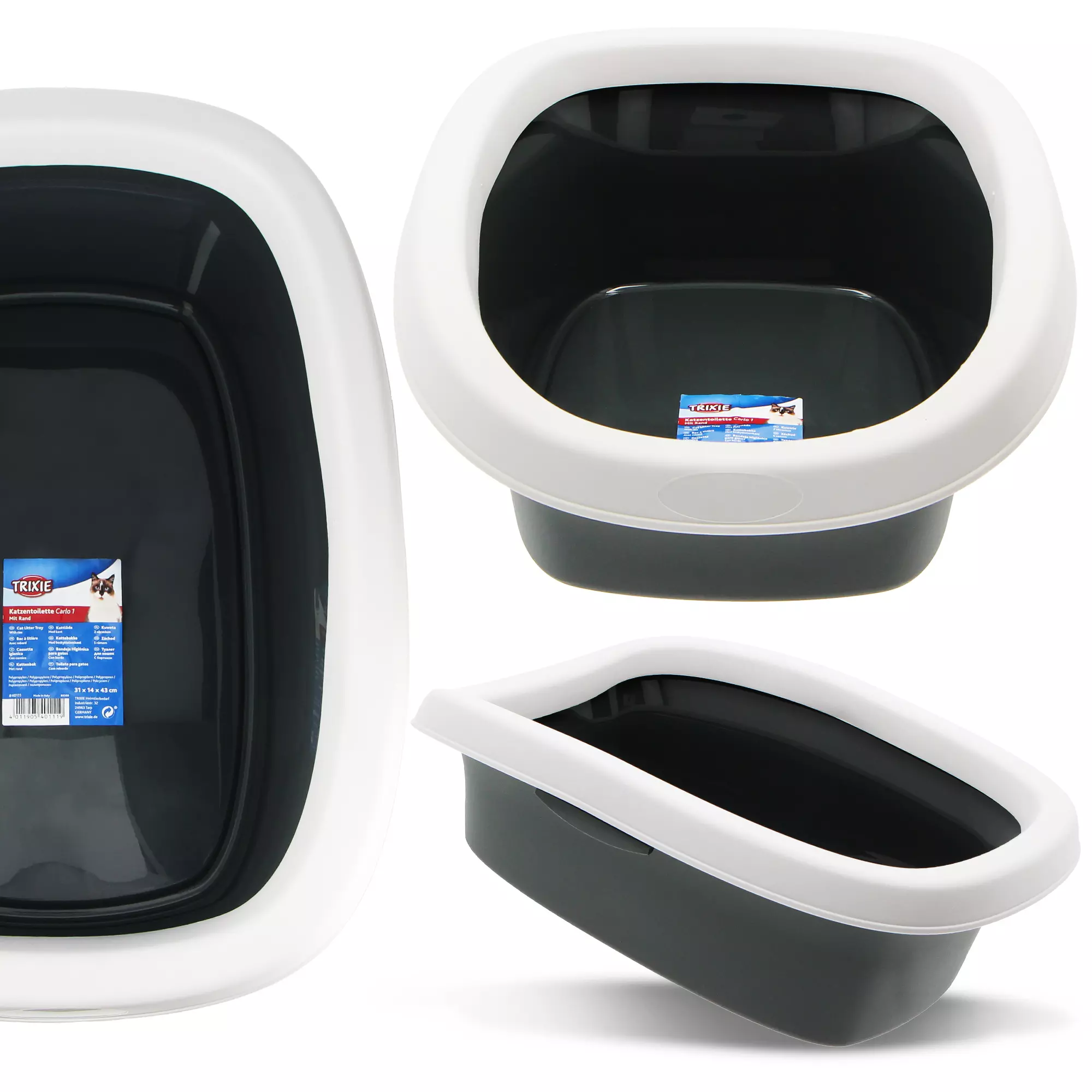 Doskonała jakość wykonania - kuweta została wyprodukowana z trwałego tworzywa sztucznego, a jej wysoki brzeg chroni przed rozsypywaniem się zawartości na boki.