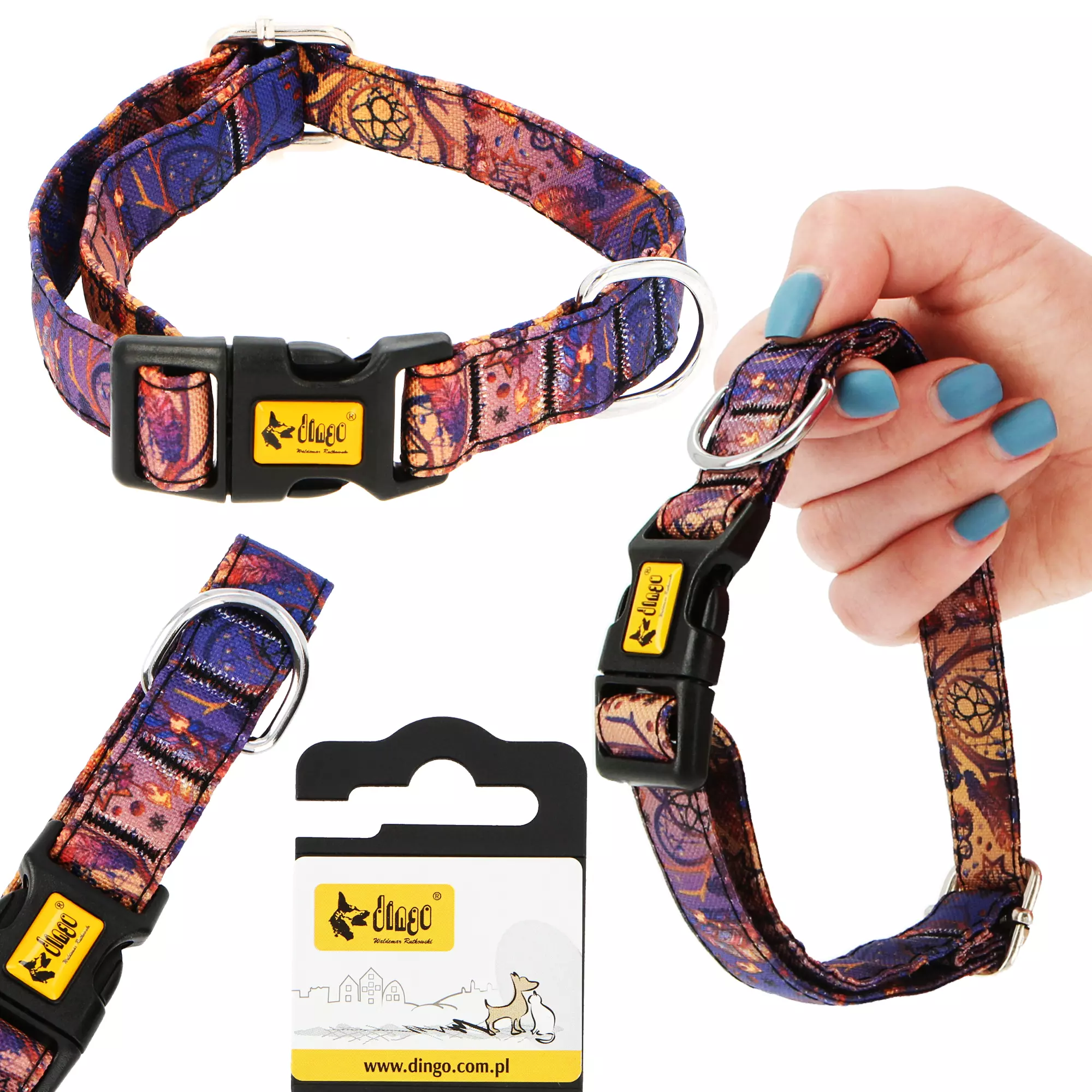 Regulowana obroża dostępna jest w kilku wariantach rozmiarowych i różnych wzorach. Dopasujesz więc produkt idealnie do wielkości zwierzaka, a także jego wyglądu.