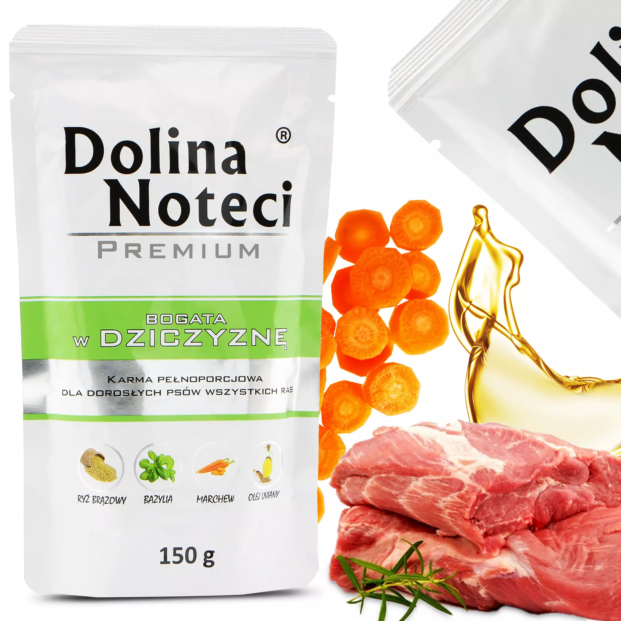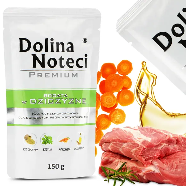 Postaw na mokrą karmę premium Dolina Noteci z dziczyzną. To naturalny skład i bezglutenowa formuła. Dzięki temu pokarmowi zadbasz o zdrowie psiaka i poprawisz jego samopoczucie.