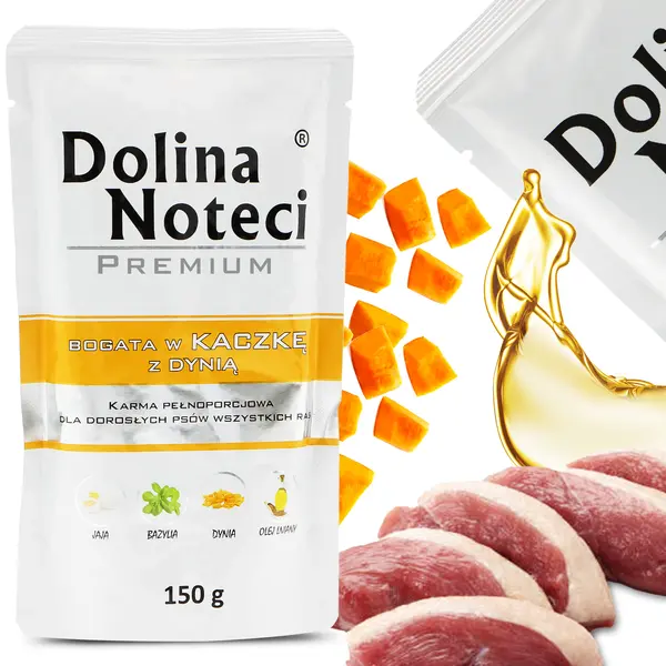 Mamy dla Ciebie doskonałą propozycję - mokra karma premium Dolina Noteci z kaczką i dynią. To pożywienie, które pokocha Twój psiak. Bezglutenowa formuła jest odpowiednia nawet dla wyjątkowo wrażliwych czworonogów.