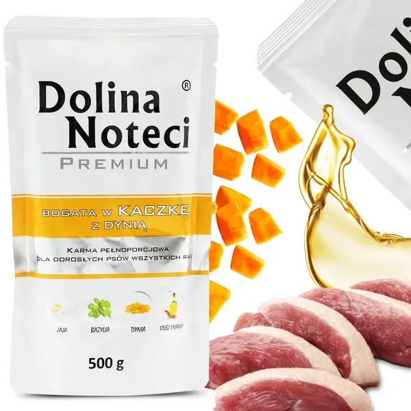 Mamy dla Ciebie doskonałą propozycję - mokra karma premium Dolina Noteci z kaczką i dynią. To pożywienie, które pokocha Twój psiak. Bezglutenowa formuła jest odpowiednia nawet dla wyjątkowo wrażliwych czworonogów.