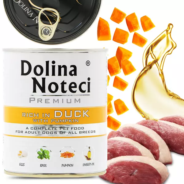 Mamy dla Ciebie doskonałą propozycję - mokra karma premium Dolina Noteci z kaczką i dynią. To pożywienie, które pokocha Twój psiak. Bezglutenowa formuła jest odpowiednia nawet dla wyjątkowo wrażliwych czworonogów.