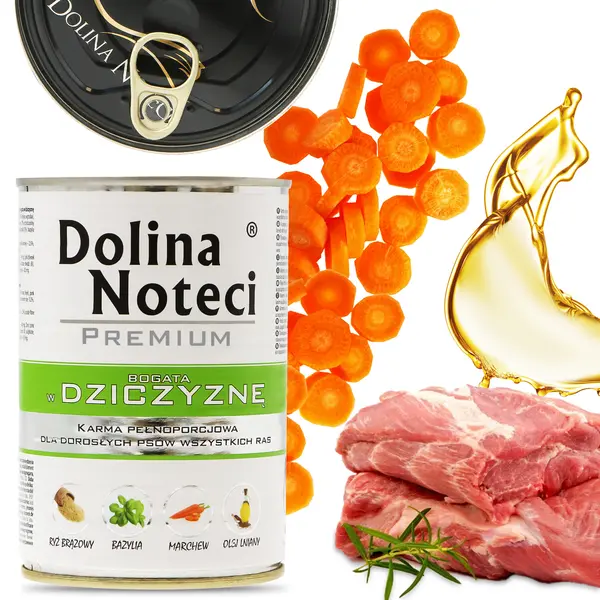 Postaw na mokrą karmę premium Dolina Noteci z dziczyzną. To naturalny skład i bezglutenowa formuła. Dzięki temu pokarmowi zadbasz o zdrowie psiaka i poprawisz jego samopoczucie.