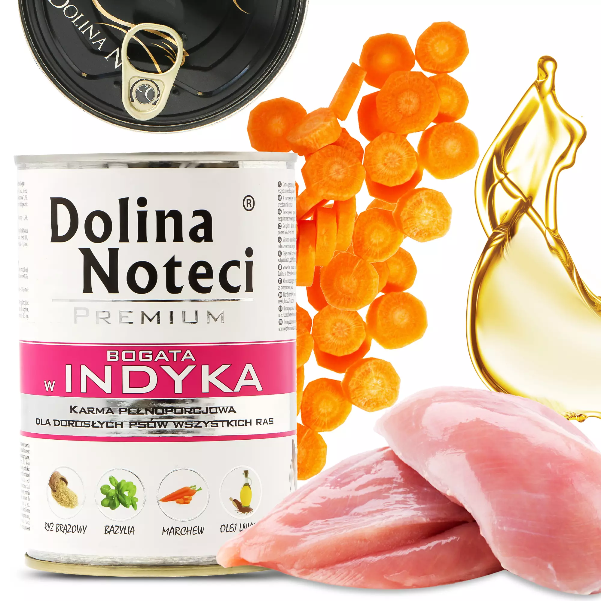 Karma Dolina Noteci z indykiem to pożywienie stworzone z myślą o dorosłych osobnikach wszystkich ras. Pokarm wyróżnia doskonały smak i aromat, a także naturalny skład.