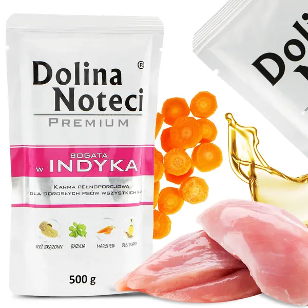 Karma Dolina Noteci z indykiem to pożywienie stworzone z myślą o dorosłych osobnikach wszystkich ras. Pokarm wyróżnia doskonały smak i aromat, a także naturalny skład.